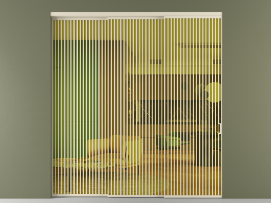 Дополнительно на раздвижную двустворчатую перегородку вдоль стены и четырёхстворчатую перегородку внутри проёма с двумя неподвижным полотнами можно установить механизм синхронного открывания — при открывании одной створки, вторая открывается автоматически.